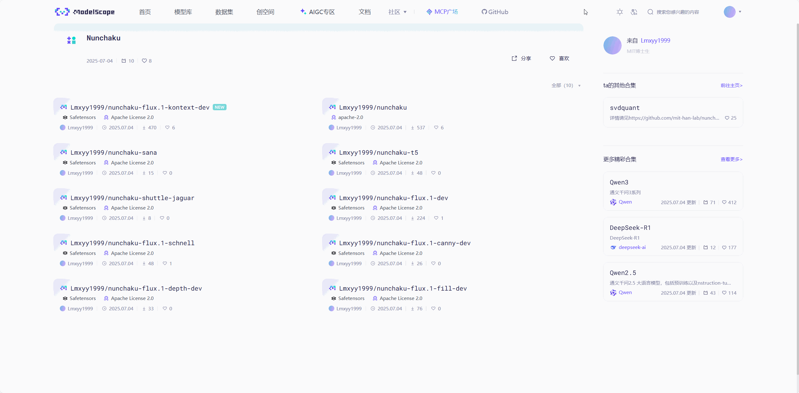 ModelScope(魔搭): https://modelscope.cn/collections/Nunchaku-519fed7f9de94e