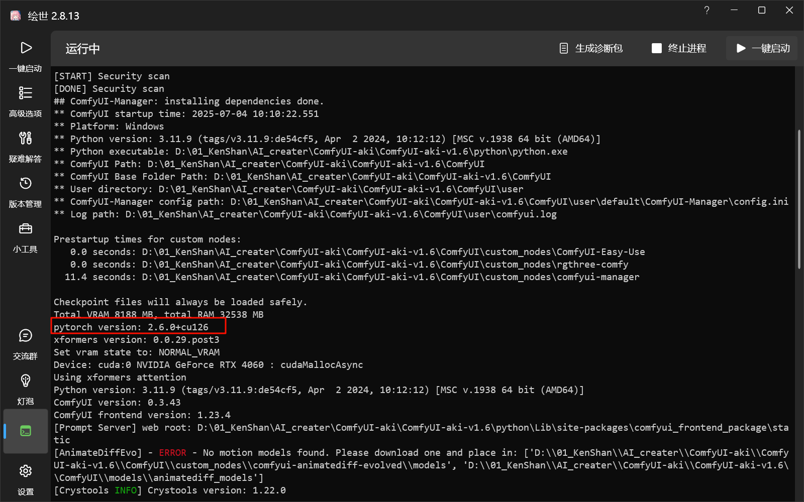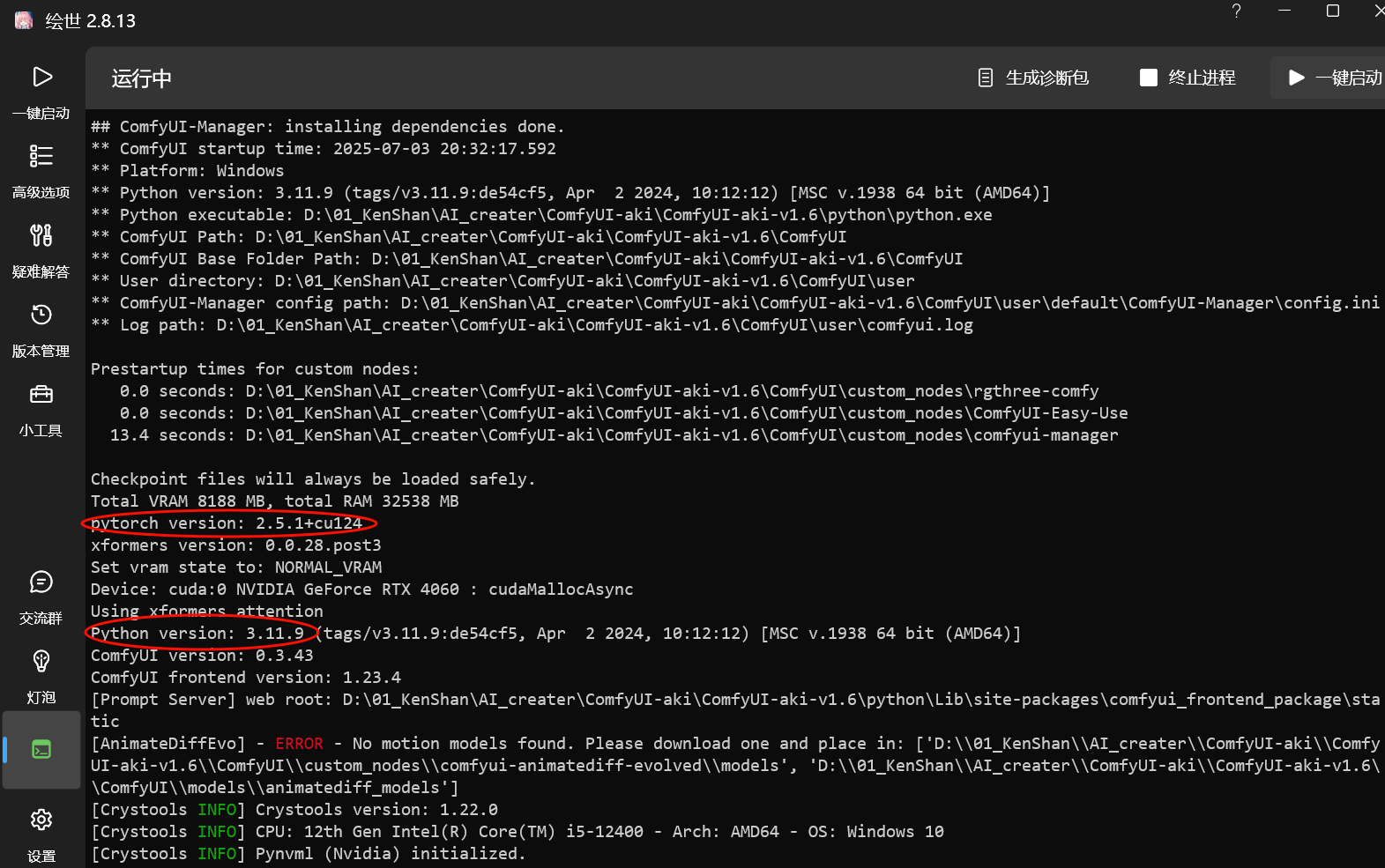 更改ComfyUI版本:启动器左侧栏版本管理→切换(你想要的版本)