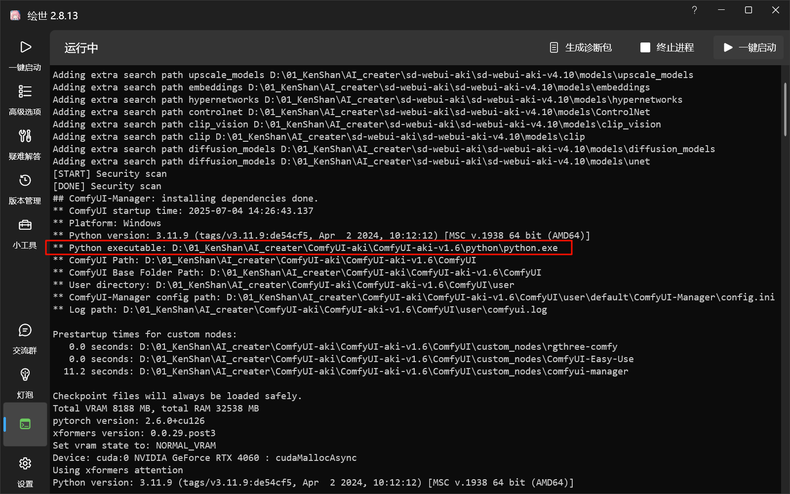 注意:50系显卡选择“Torch 2.7.0 (CUDA 12.8) + xFormers 0.0.30”