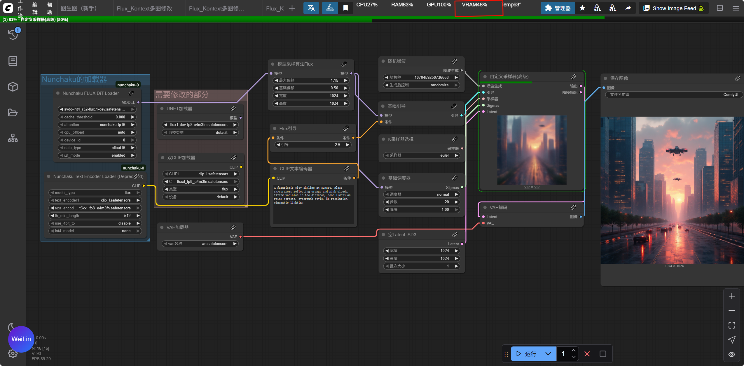 注意:Nunchaku FLUX Dit加载器需要用我们刚刚下载的量化模型
