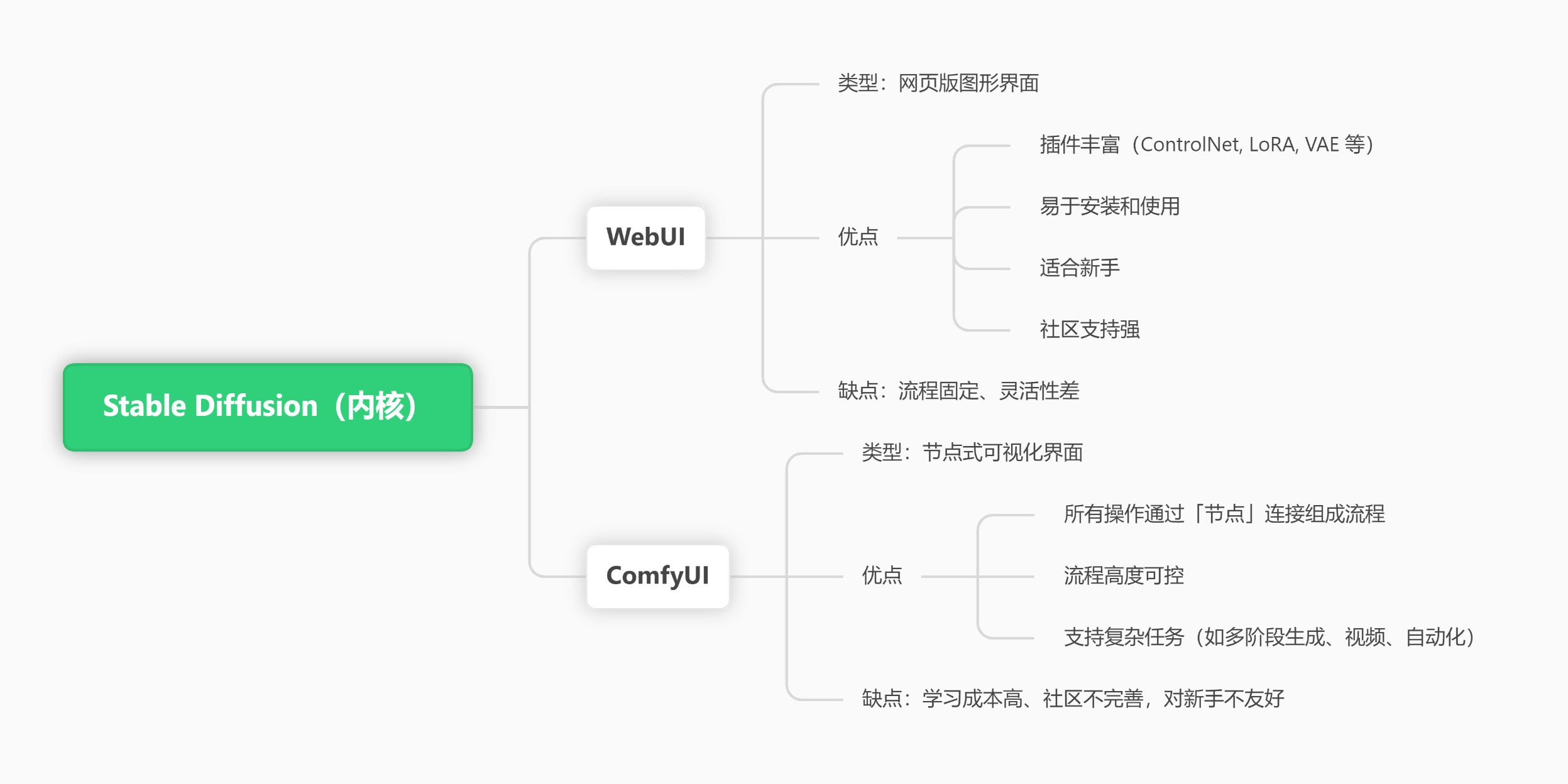 表格直观比较ComfyUI 与WebUI