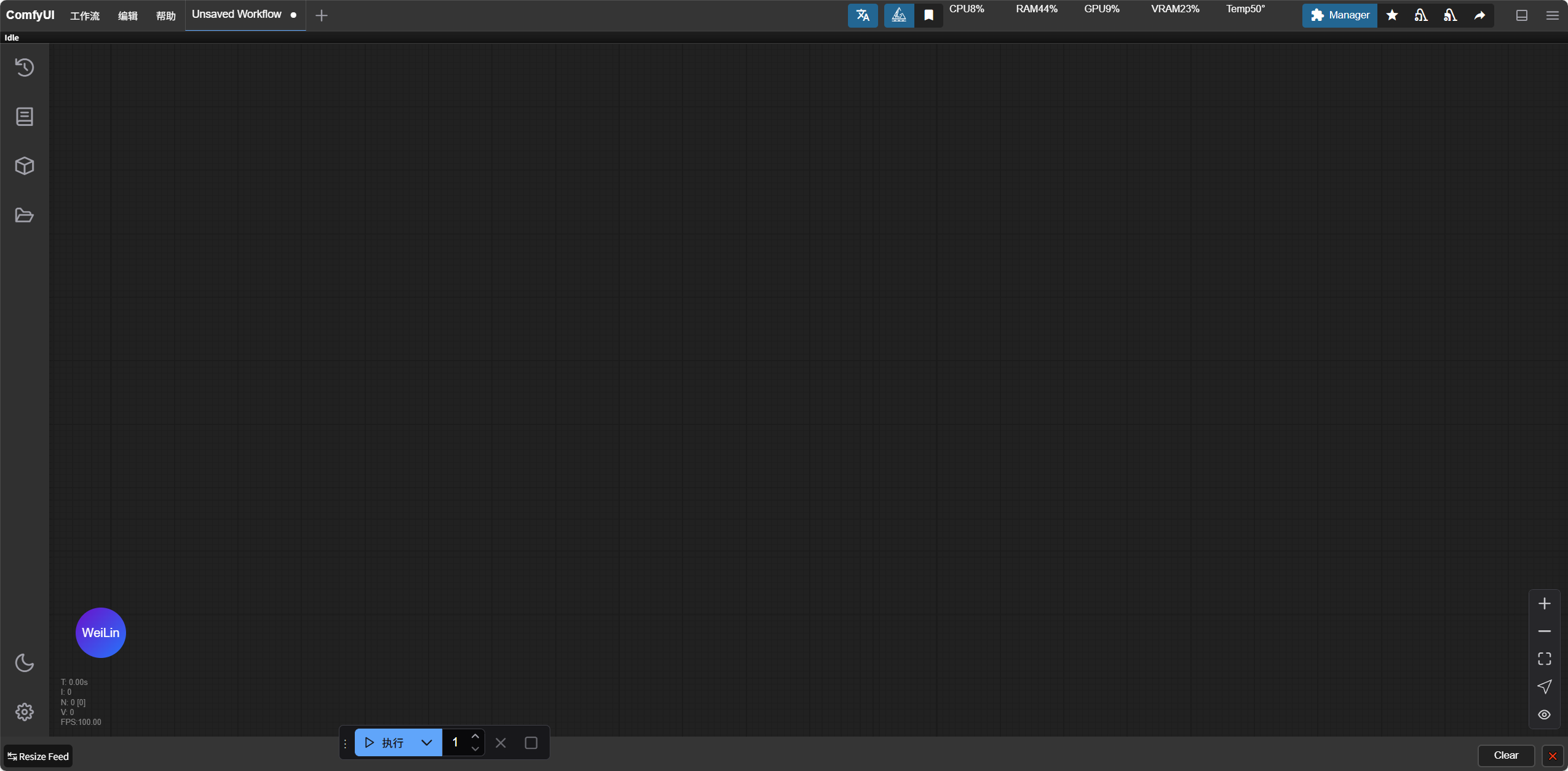 接下来,我们来讲讲ComfyUI的具体使用,在启动器内,点击“一键启动”。稍等片刻你会看到如下的界面: