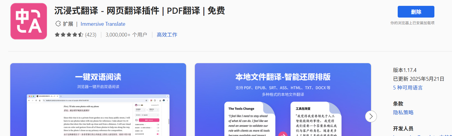 这里推荐一个不是ComfyUI内部的浏览器翻译插件:沉浸式翻译(相信很多人都使用过了),它也可以翻译ComfyUI内的文字