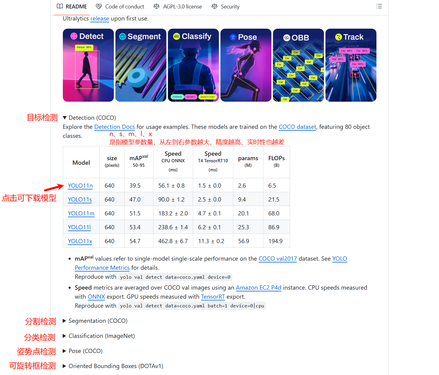 yolo的官网下滑到README的部分可以下载模型,把下载的模型放到合适的位置,记住路径